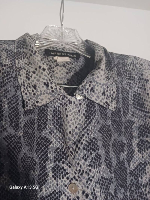 Impressions Womans Size Medium Snake Print Button Shirt with Adjustable Sleeves