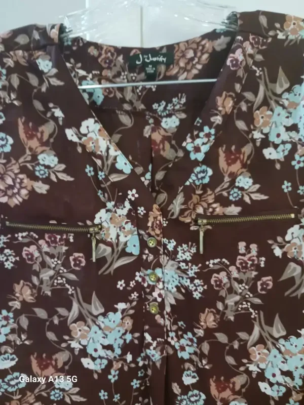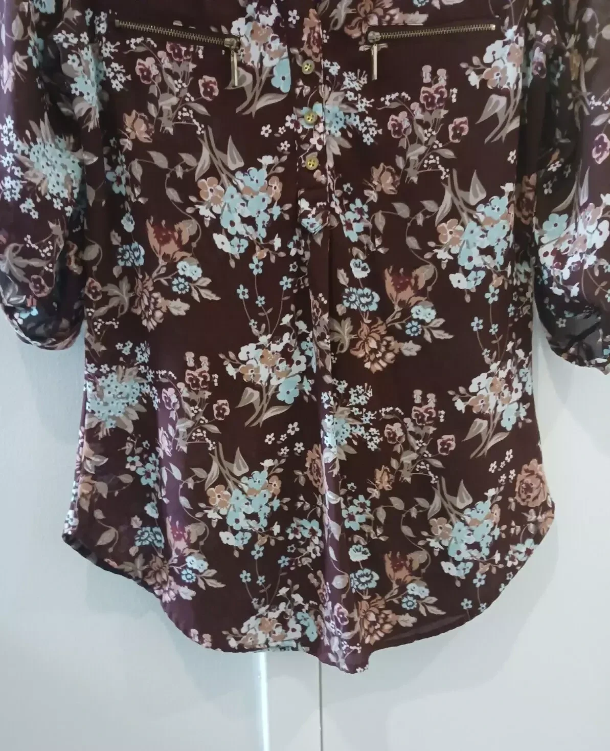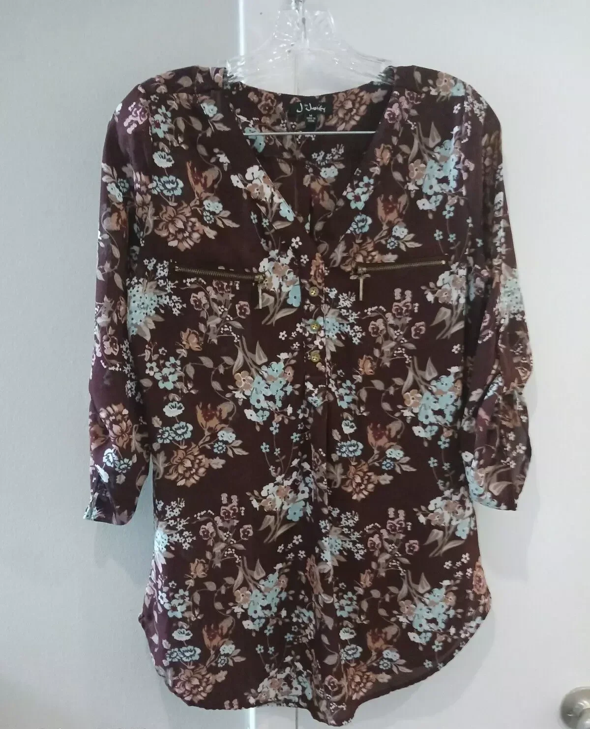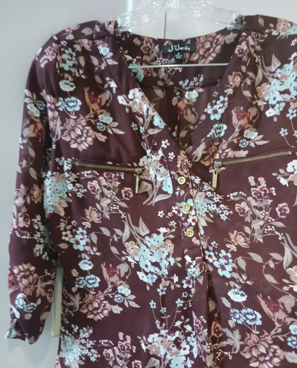 J is for Justify Womans Medium Floral Blouse 3/4 Adjustable Sleeves