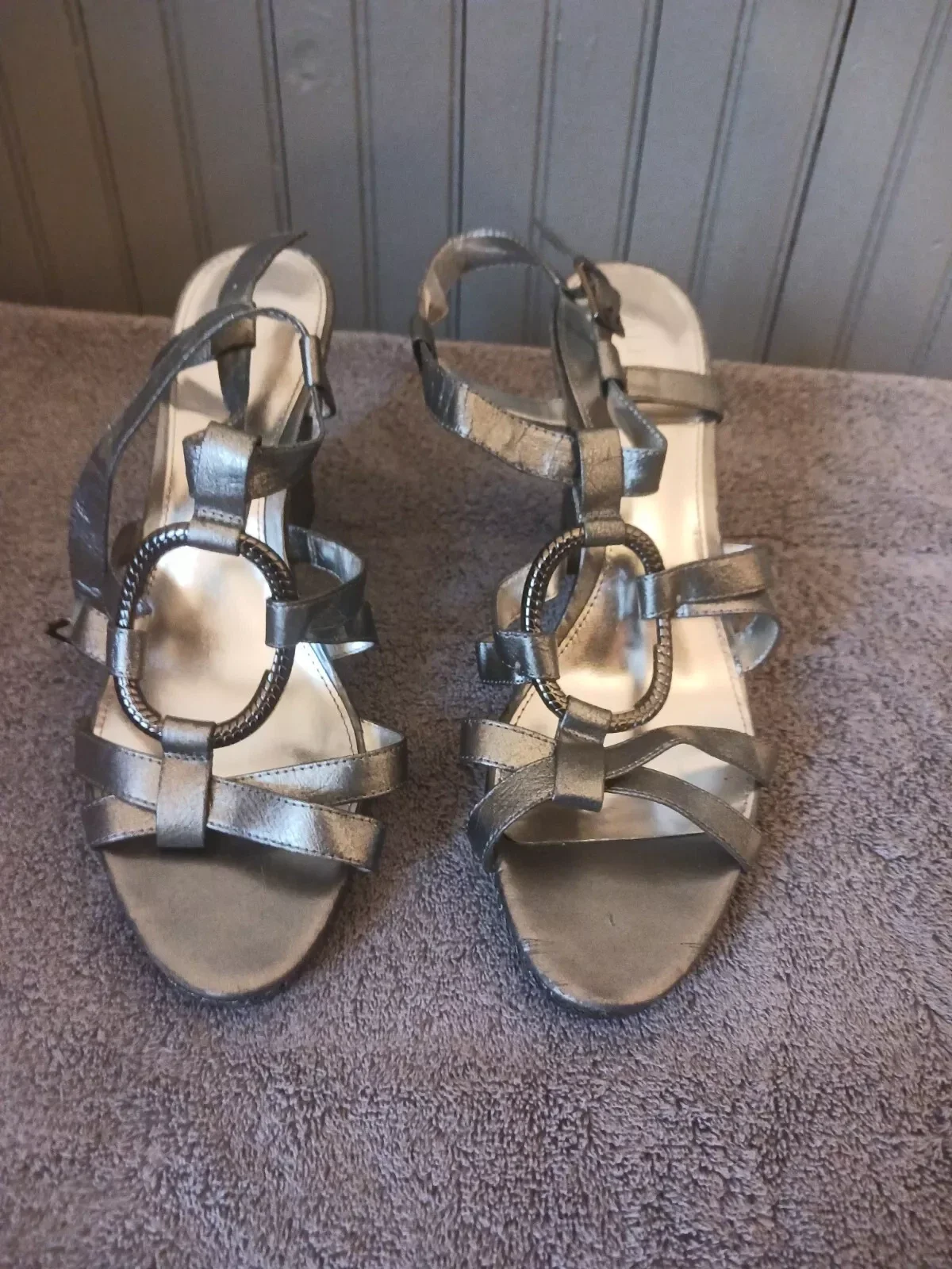 Designed for the fashion-forward woman, these gray sandals feature a sleek, solid pattern and a secure buckle closure that ensures a comfortable fit for a size 9 US shoe.