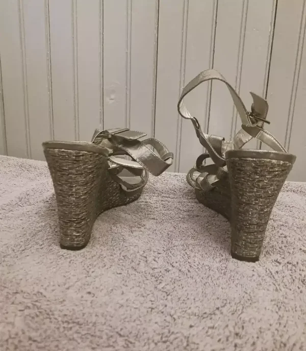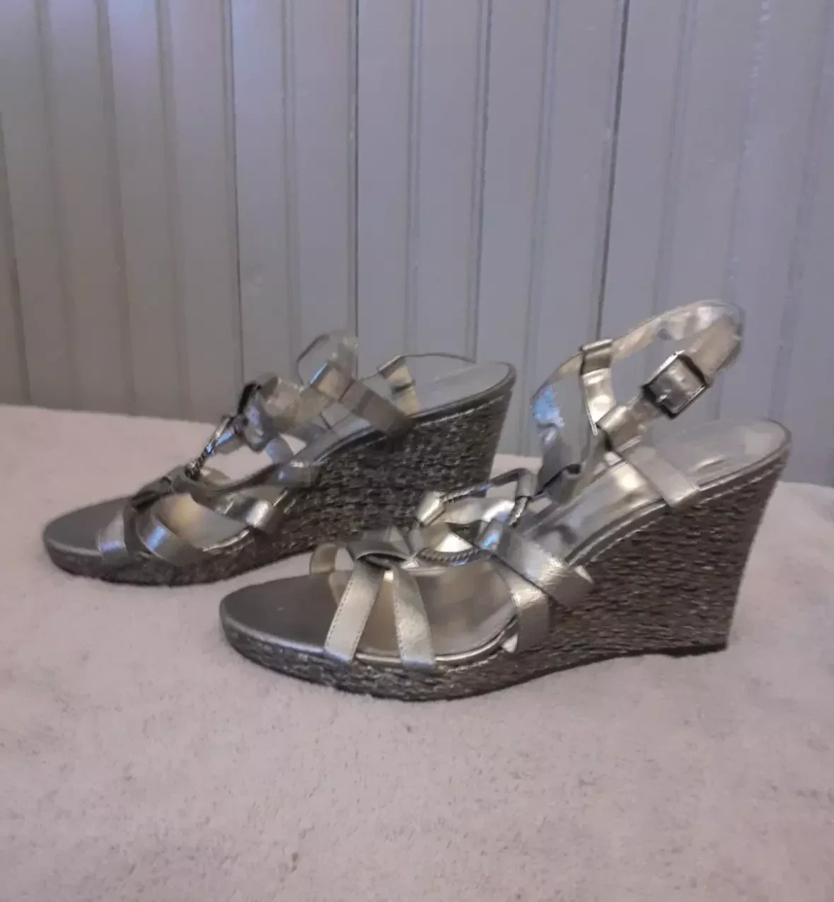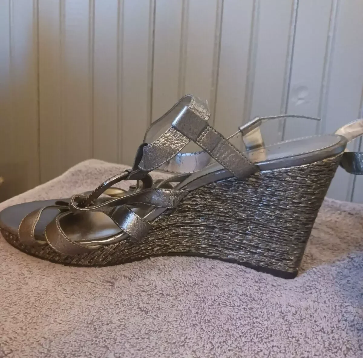 Alfani Womans Gray Shoes Size 9 Wedges 4.5" Open Toe
