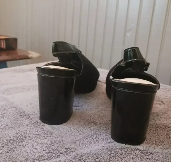 Crafted for women who appreciate a blend of comfort and elegance, these shoes feature a sleek open-toe design and a sturdy 3 1/4" heel that provides both height and stability. And side buckles on both shoes.