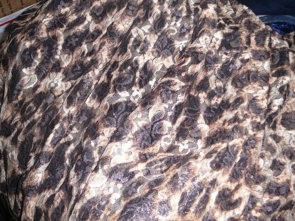 The top features a trendy leopard print with a touch of glitter and delicate lace accents.