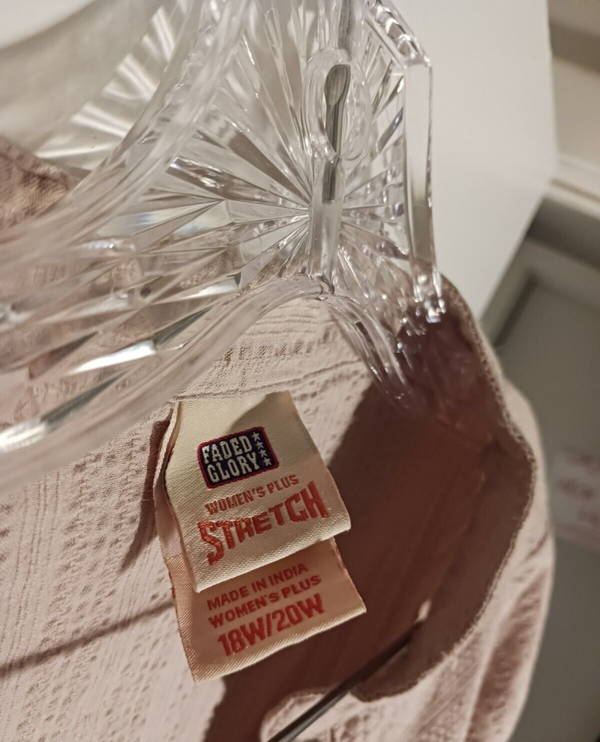 Faded Glory Womans Tan Mandarin Collar Shirt Snap Front Smock Shirt Size 18w/20w Stretch