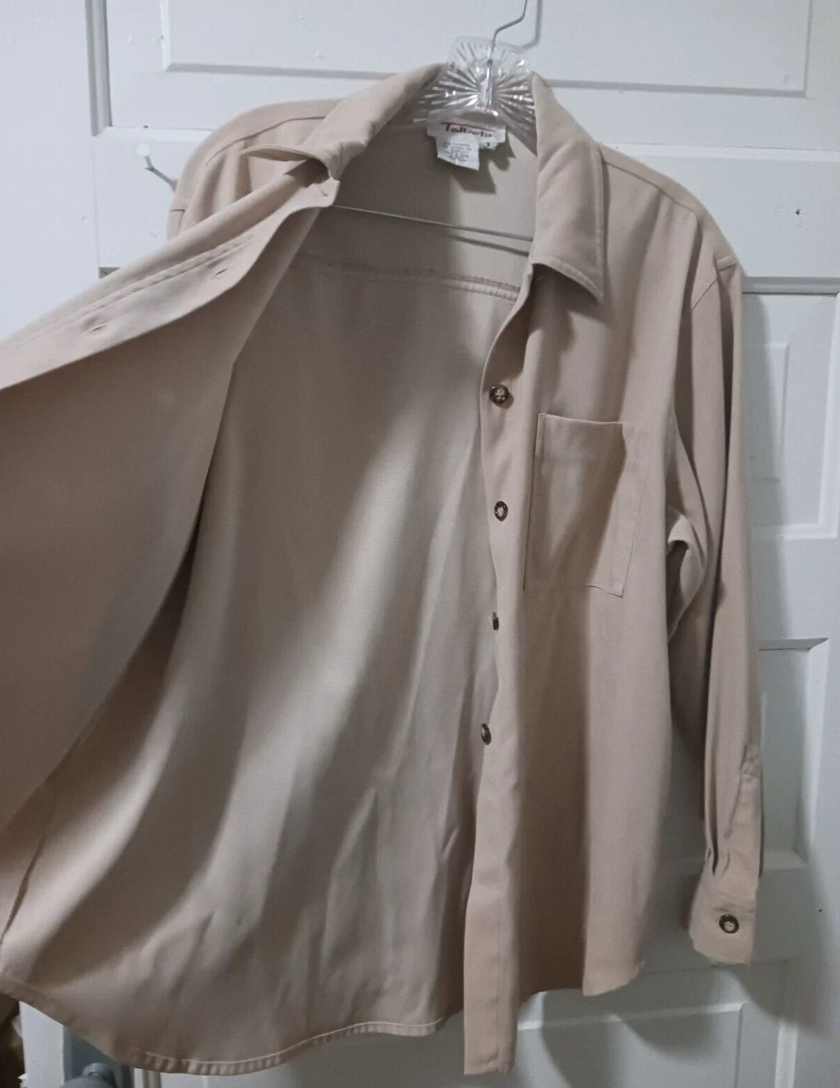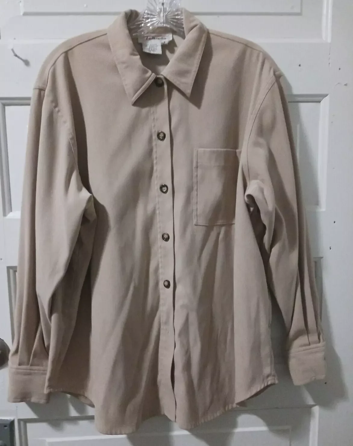 Talbots Womans Small Beige Long Sleeve Plush Button Up Shirt