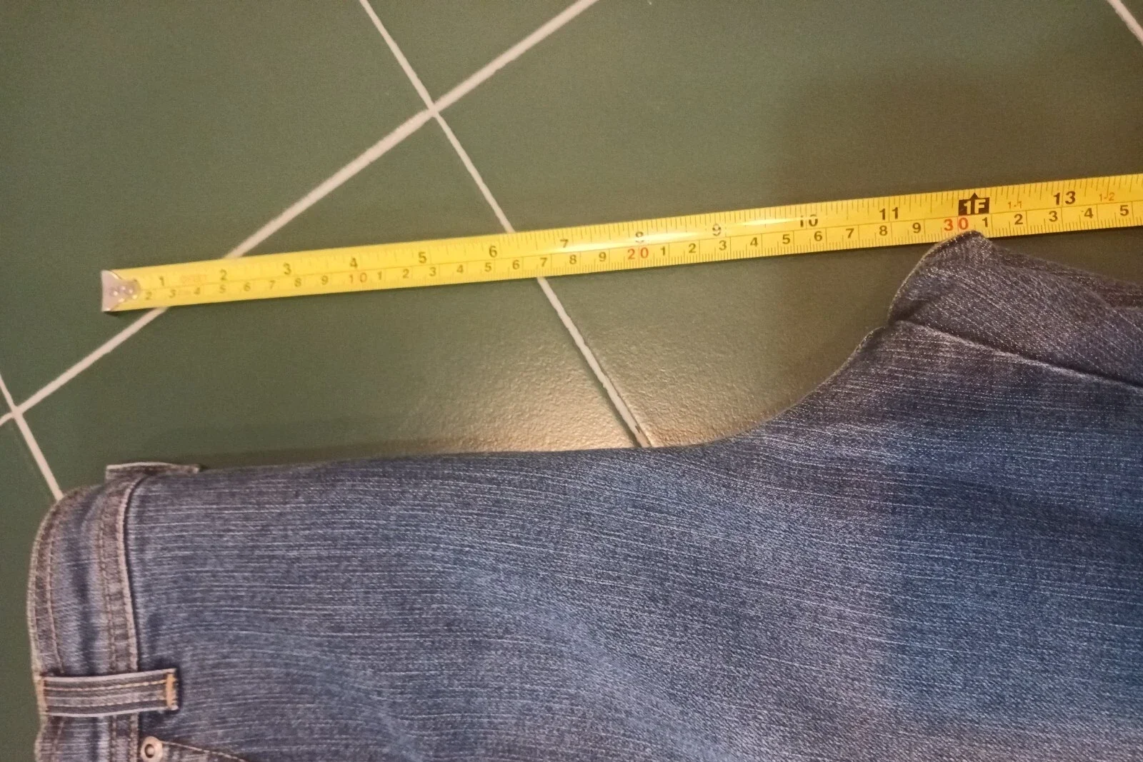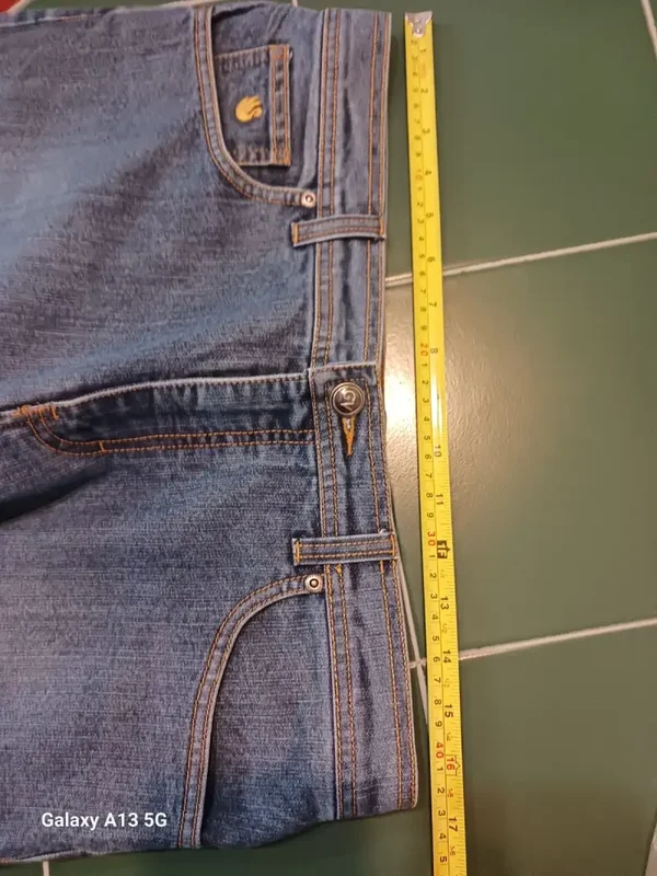 33.5" waist, 40" waist, 27" inseam and 12" rise
