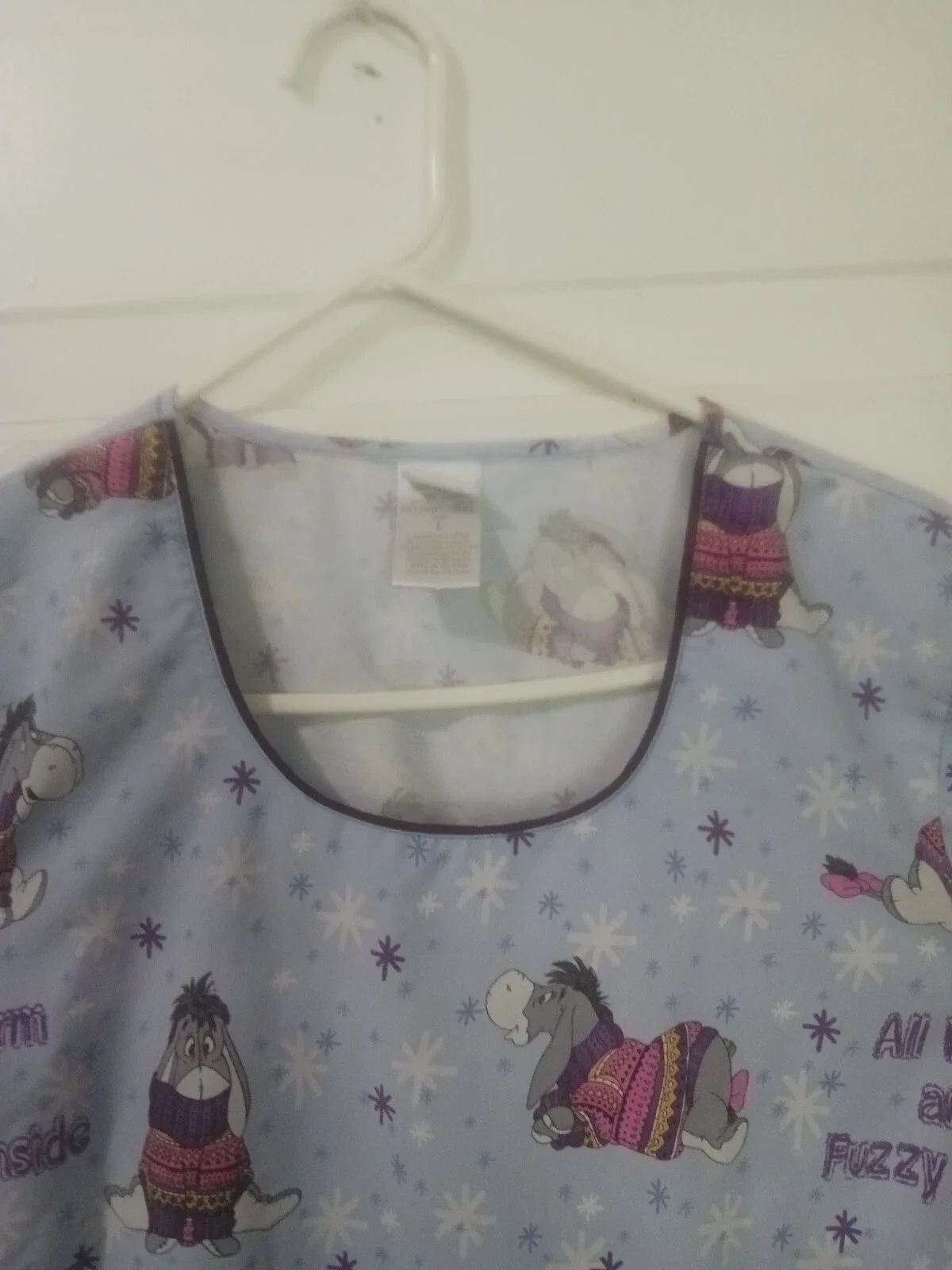 Disney Eeyore Winter Womans Large Scoop Neck Fitted Scrub Top