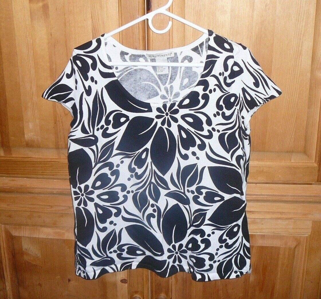 Womans Large Black and White Floral Light Feel Knit Stretch Blouse by Requirements
