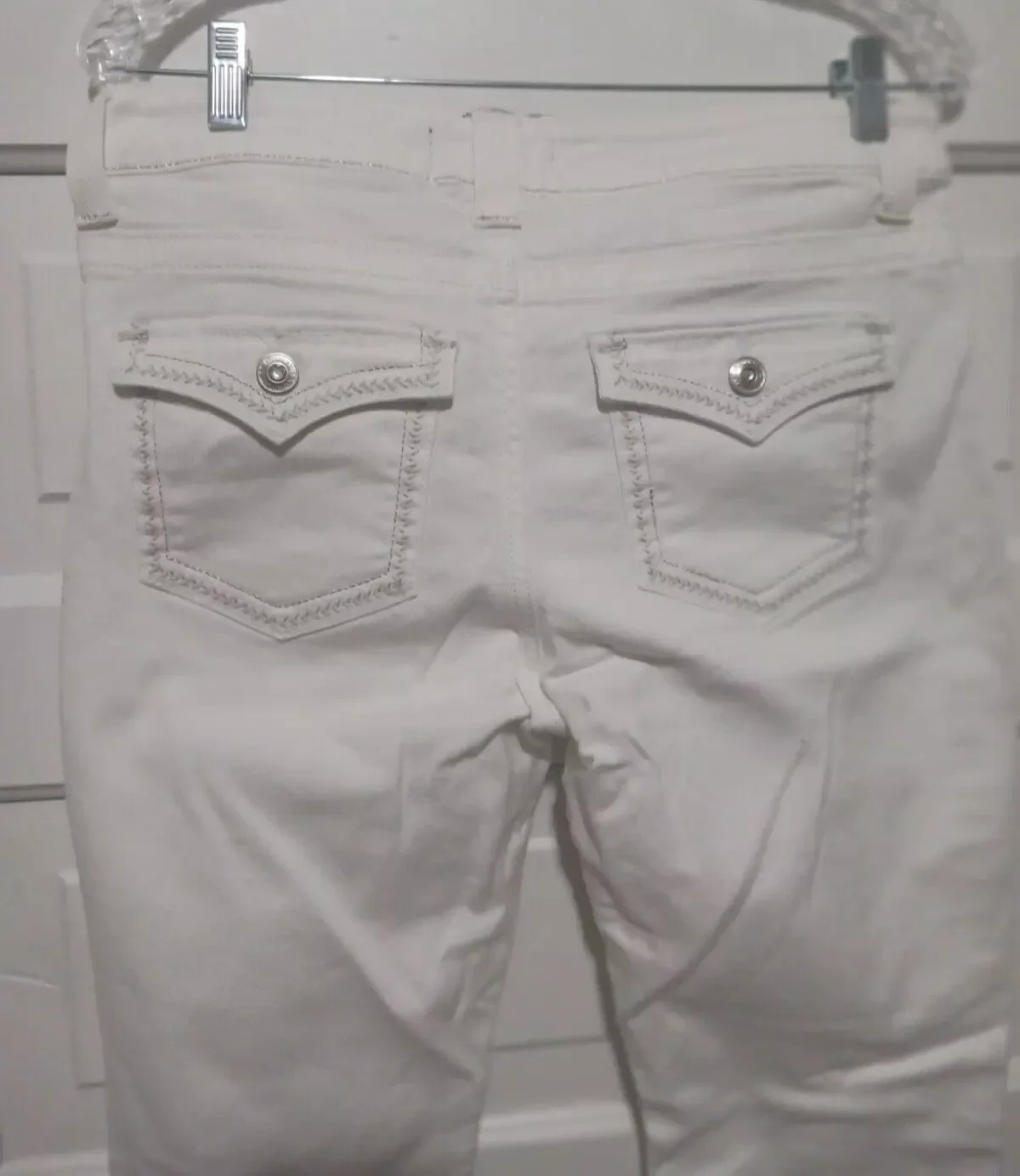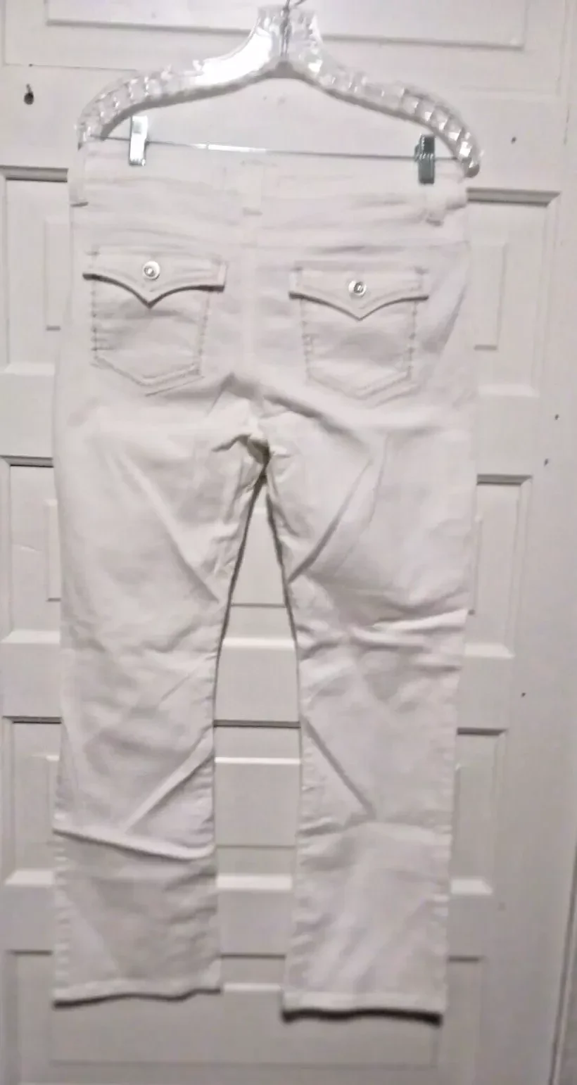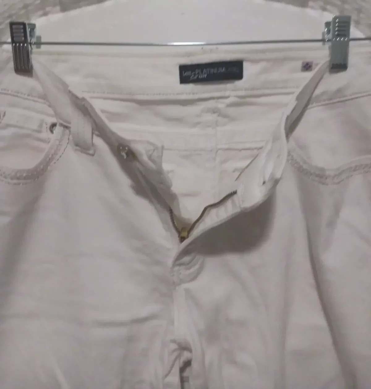 Womans Lee Platinum Sz 12 Short Jewel Silver Trim Midrise White Jeans