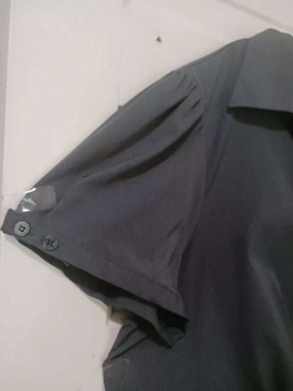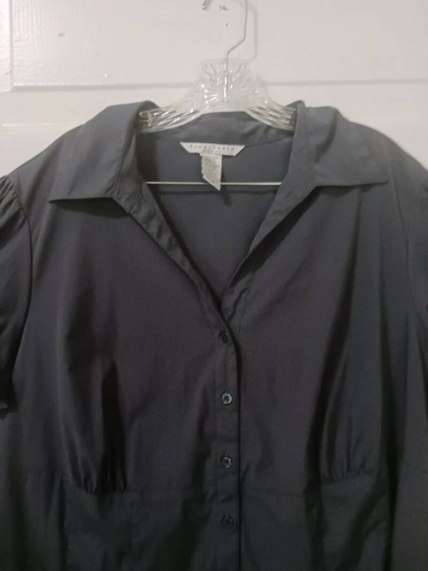 Fred David Womans Dk Gray Stretch Button Down V-Neck Shirt Plus Sz Blouse 22/24W